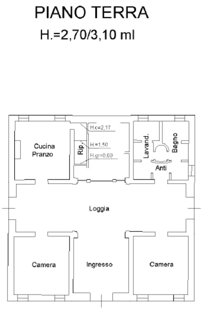 Il piano terra è composto da un soggiorno, una cucina abitabile, 2 camere matrimoniali e un bagno doppio.