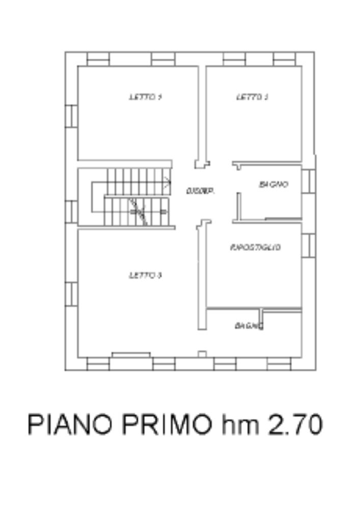 Al primo piano si sviluppa la zona notte, composta da tre camere da letto, di cui una dotata di bagno privato, oltre a un ripostiglio.