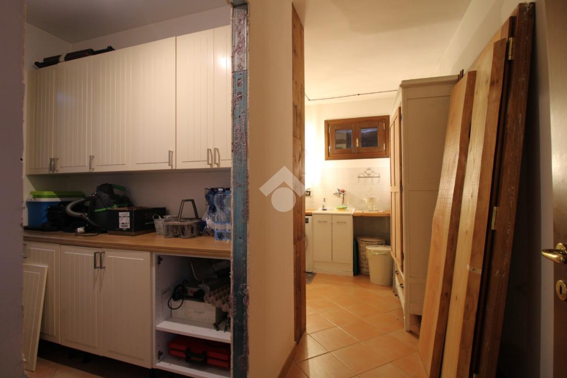 Al piano terra, l’ingresso conduce agli ambienti principali dell’abitazione, dove troviamo un soggiorno caratterizzato da camino, un bagno, una sala da pranzo con lavanderia e cantina, una cucina abitabile, un ripostiglio e un’ulteriore lavanderia, offrendo spazi funzionali e ben organizzati.