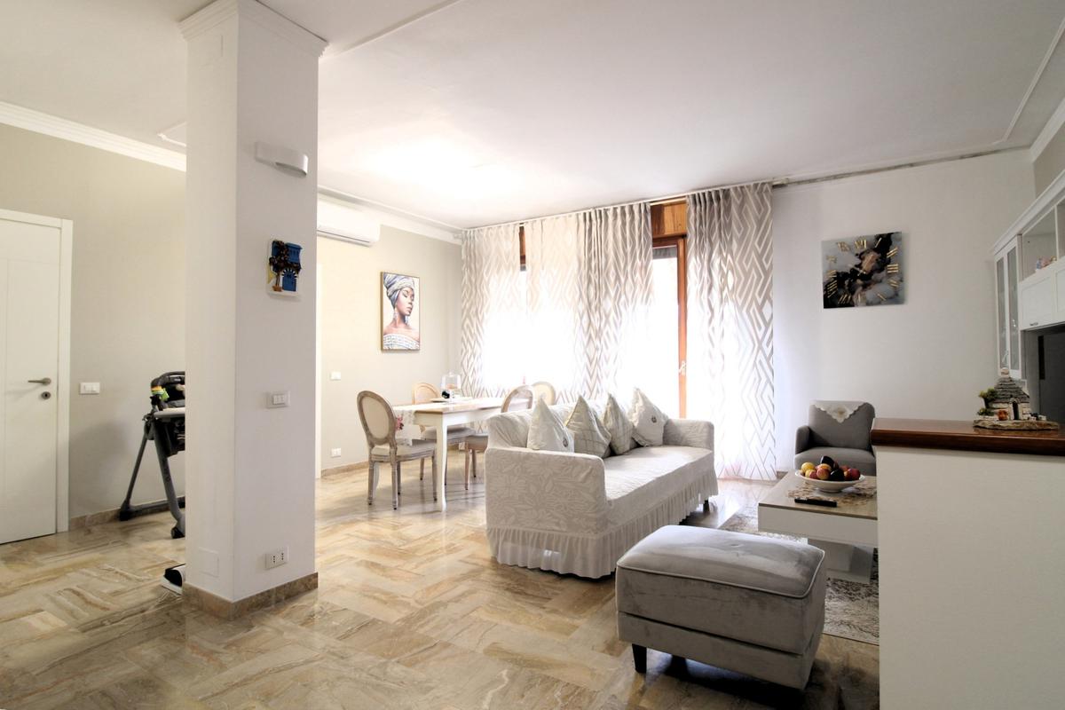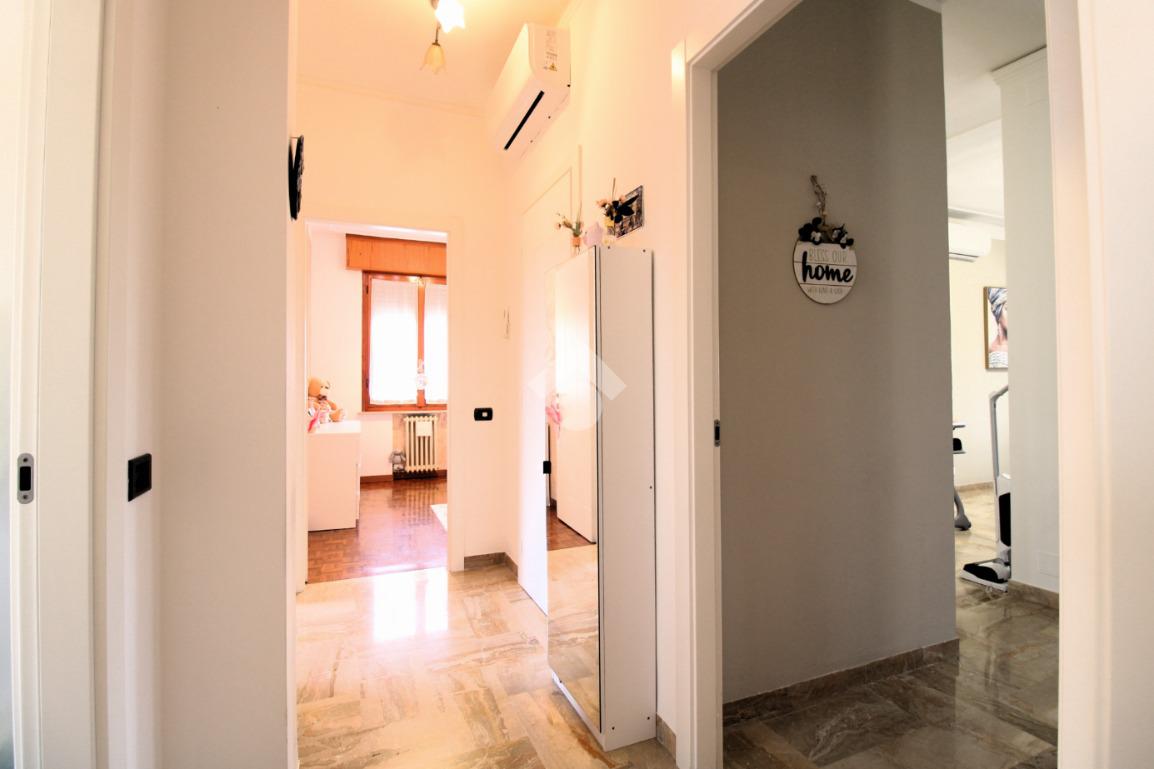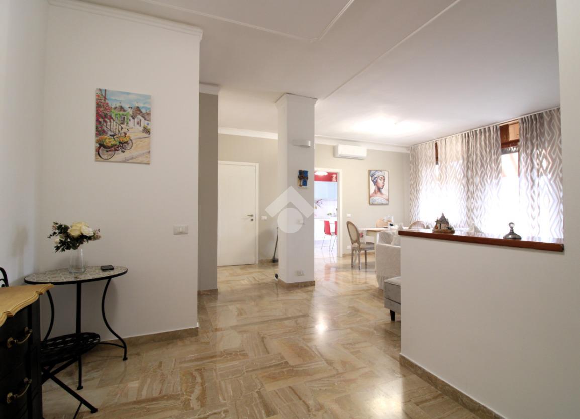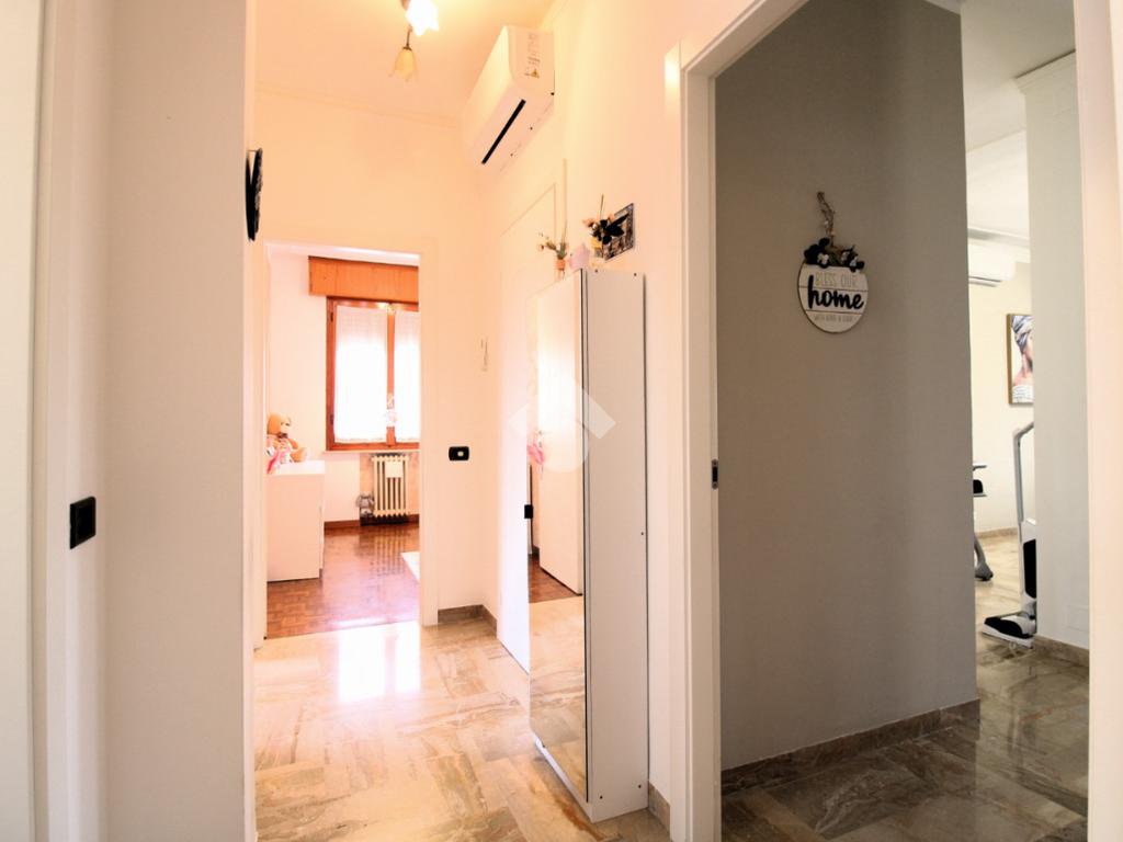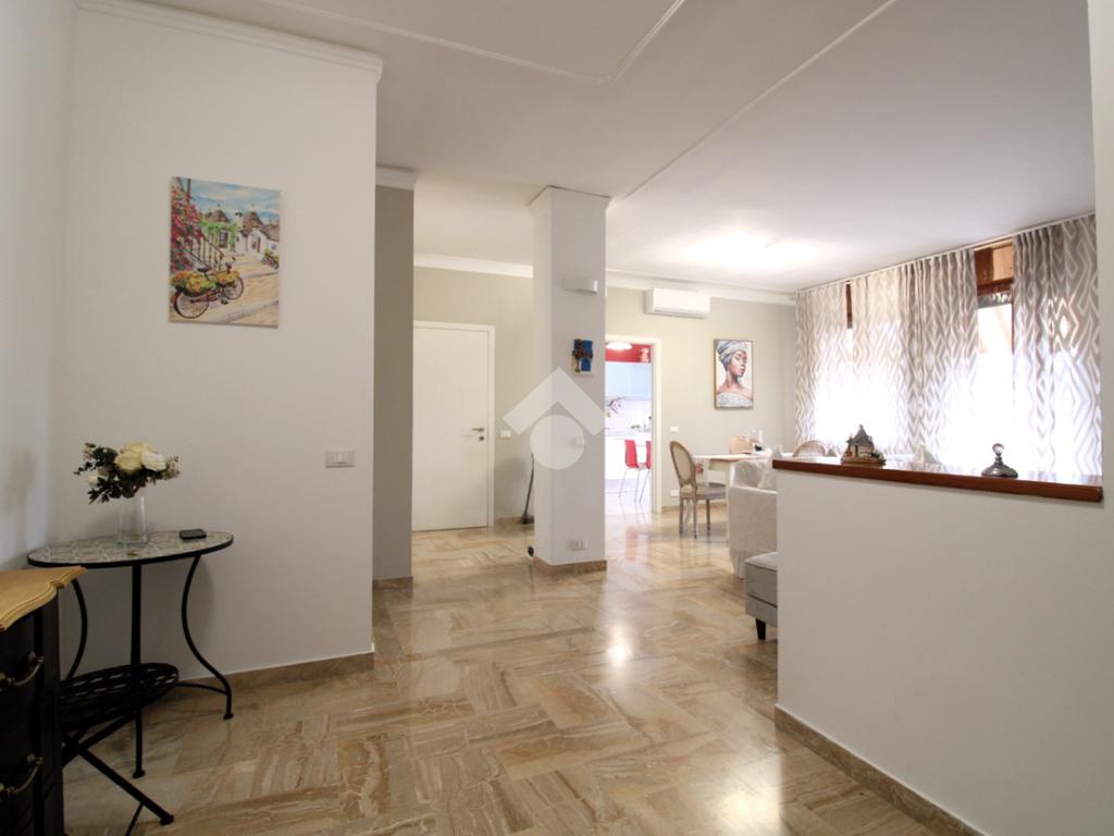 Questa soluzione, si compone di ingresso, cucina abitabile completamente ristrutturata, soggiorno con balcone, antibagno e bagno, due camere matrimoniali, cameretta e bagno con doccia.