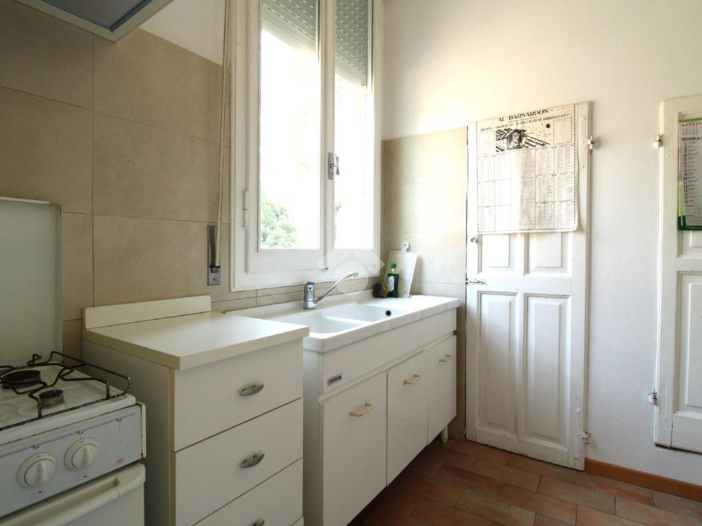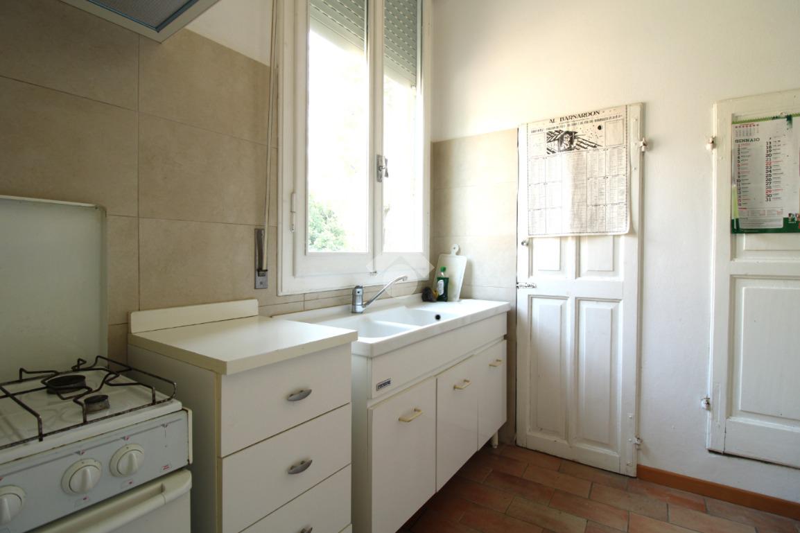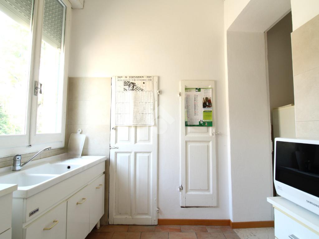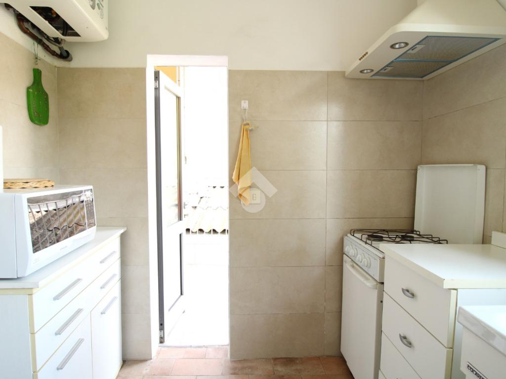 L’ingresso, dotato di porta blindata installata nel 2018, conduce alla zona giorno composta da soggiorno e lavanderia, dalla quale si accede alla cucina. La cucina dispone di accesso diretto a un terrazzino.