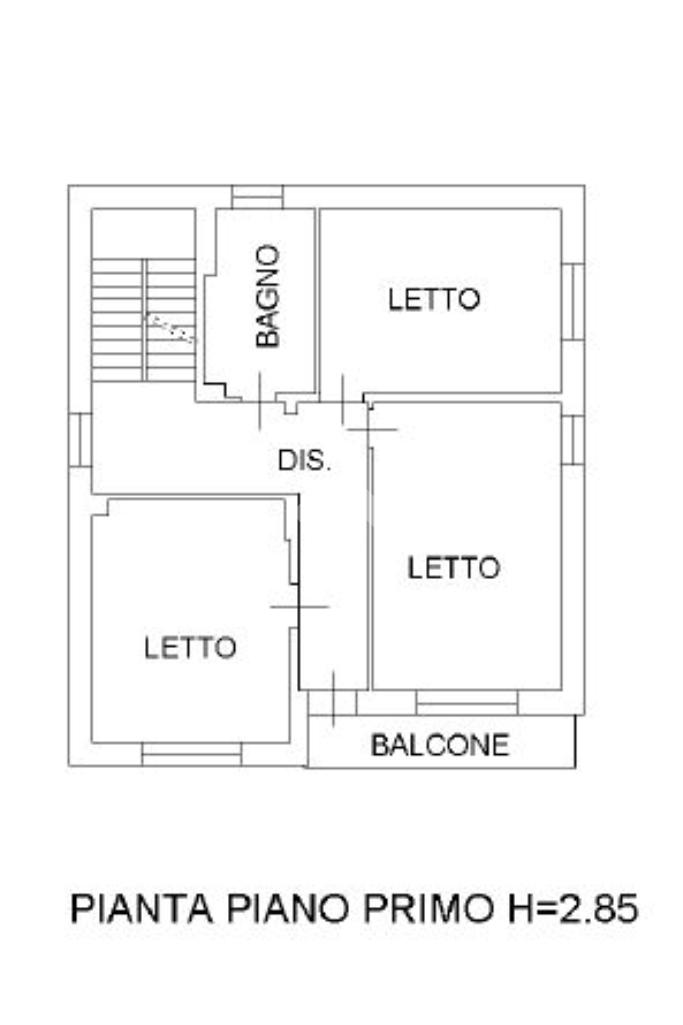 Al primo piano troviamo 3 camere da letto matrimoniali, un disimpegno con sfogo su un balcone ed un bagno. Al piano secondo è presente una soffitta. La casa è racchiusa da 3000 mq di giardino privato e la proprietà comprende 2 depositi ed un'autorimessa.