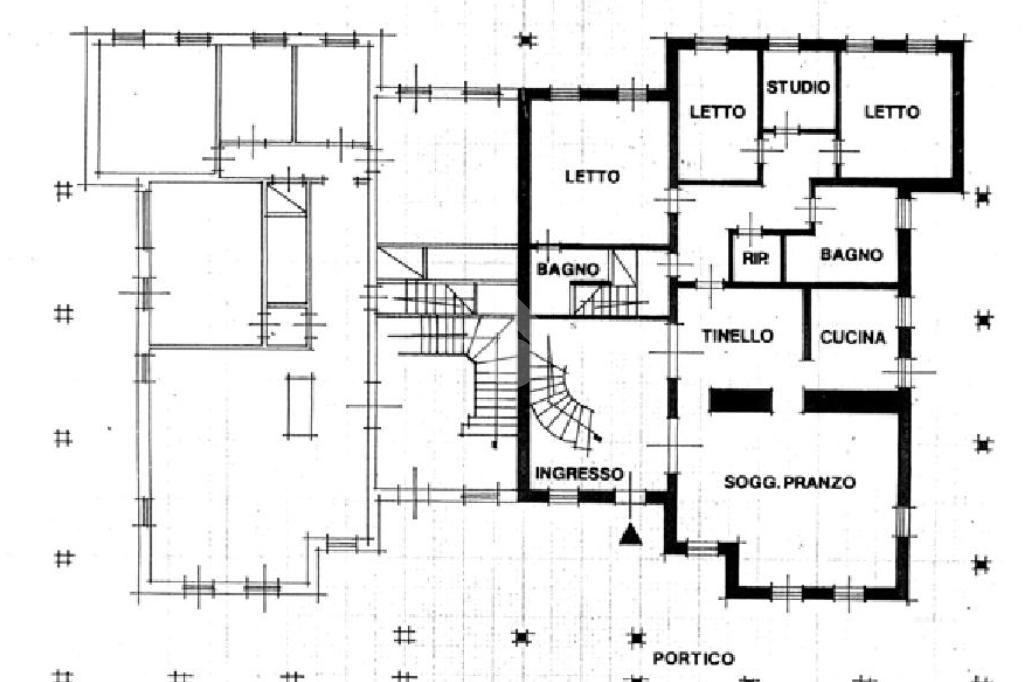 Al piano terra: ingresso su ampio disimpegno con importante scala in legno, soggiorno con camino in marmo, cucina abitabile con dispensa, bagno padronale con vasca, tre camere da letto di cui una con ampio balcone e bagno in camera.