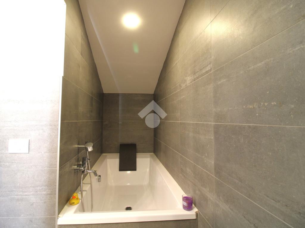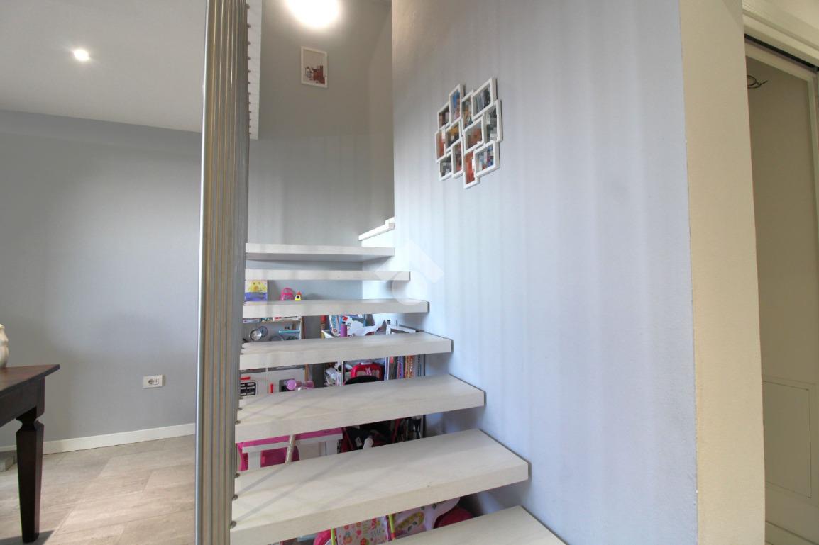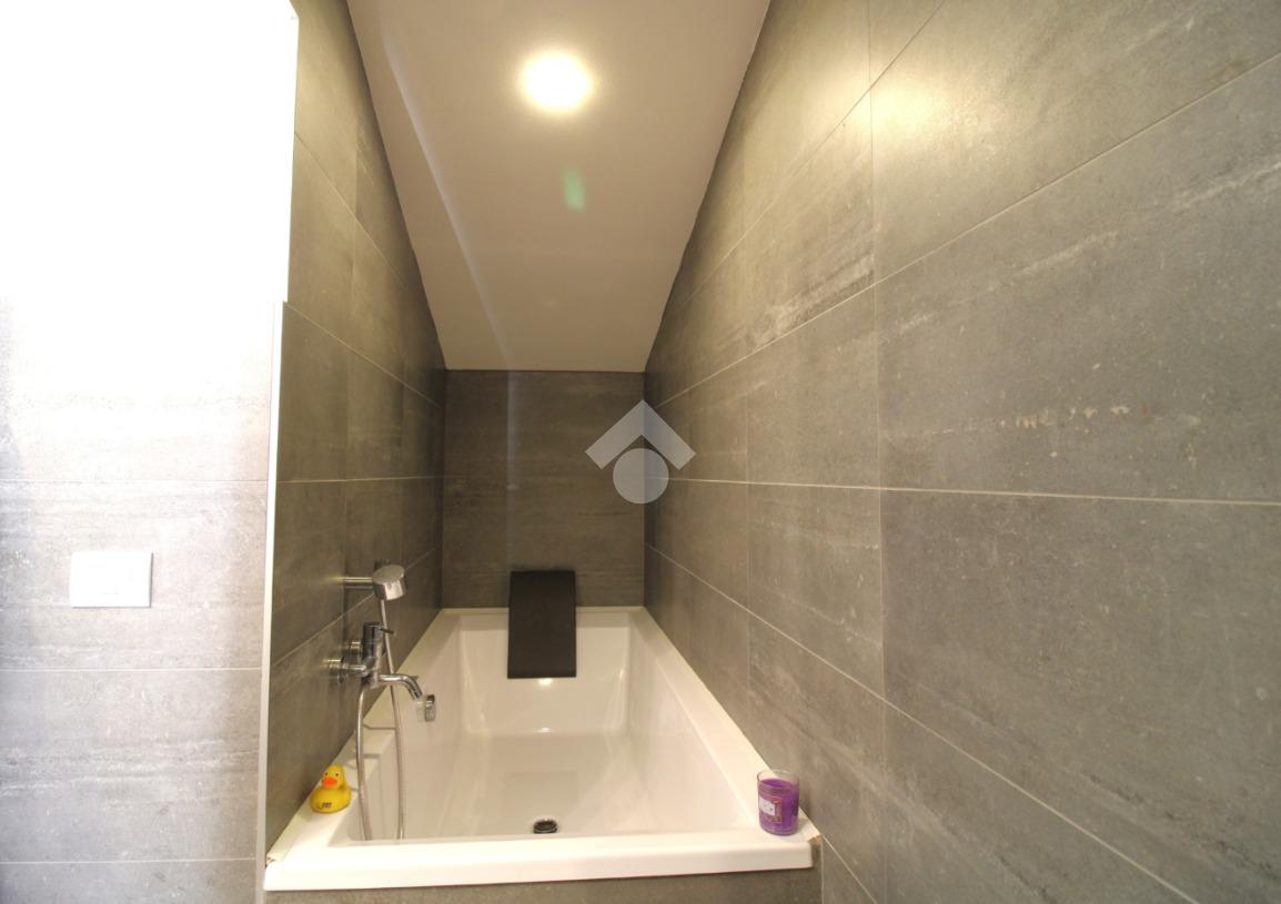 Al primo piano troviamo due camere da letto matrimoniali, uno studio dotato di giardino pensile, un bagno caratterizzato dalla presenza sia della doccia che della vasca e un’ulteriore camera mansardata.