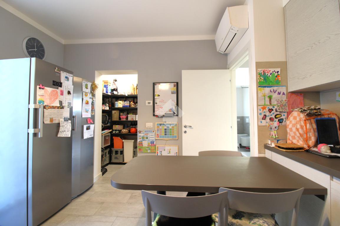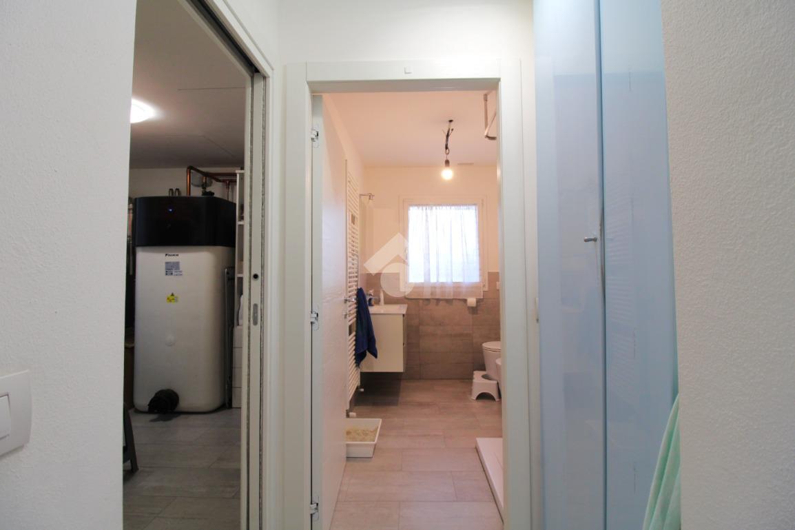 Al piano terra si accede tramite ingresso su un’ampia e luminosa sala da pranzo. Seguono una cucina con dispensa, un bagno, un ripostiglio e un ulteriore vano tecnico dedicato agli impianti.